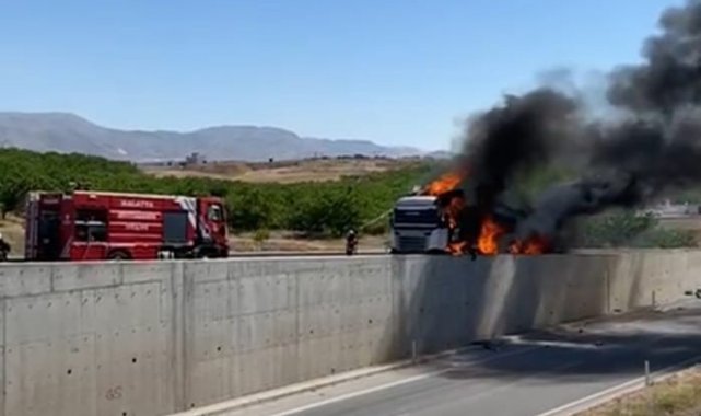 Olay, saat 15.30 sıralarında Malatya Havalimanı yolu üzerindeki Bindal Kavşağı mevkiinde meydana geldi. Edinilen bilgilere göre, seyir halindeki bir tırın lastiği patladı. Kontrolden çıkan araç, yol kenarındaki bariyerlere çarptı. Çarpmanın etkisiyle araç bir anda alev alırken, olay yerine itfaiye ekipleri sevk edildi. Kısa sürede büyüyen yangın, aracın tamamını sardı. Tır tamamen yanarak kullanılamaz hale gelirken, sürücü kazayı yara almadan atlattı. Ekiplerin müdahalesi sonucu yangın kontrol altına alınarak söndürüldü.
