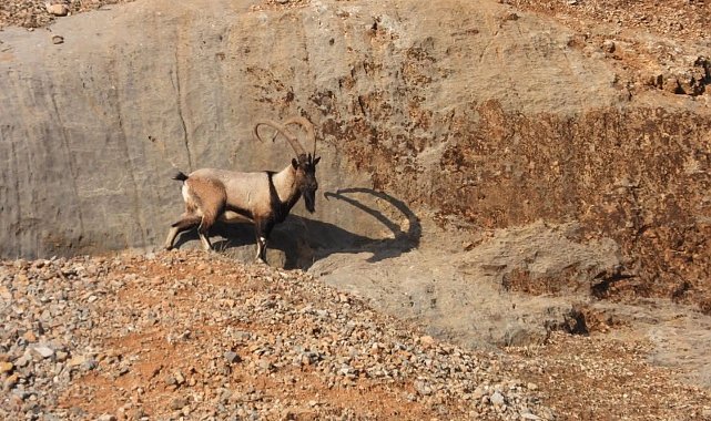 Yaban keçileri, Doğanşehir'e bağlı Erkenek Mahallesi Akdağ bölgesinde görüntülendi. Avlanması yasak olan yaban keçileri, beslenmek amaçlı çıktıkları kayalıklarda cep telefonu kamerasına yansıdı. Sarp ve dik kayalarda gezen yaban keçileri, kayalık alanlarda zayıf ve çevik bedenleri sayesinde 90 derecelik dik bir açı gibi görünen yamaçlara bile kolayca tırmanabiliyor.