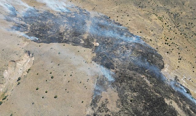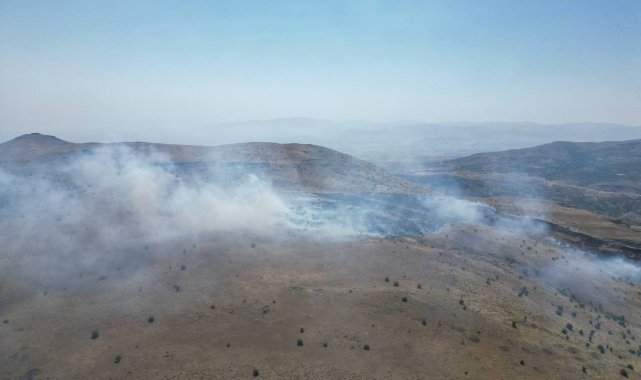 Malatya'nın Akçadağ ilçesinde dağlık alanda çıkan örtü yangını havadan görüntülendi.