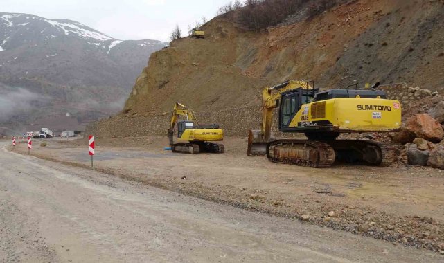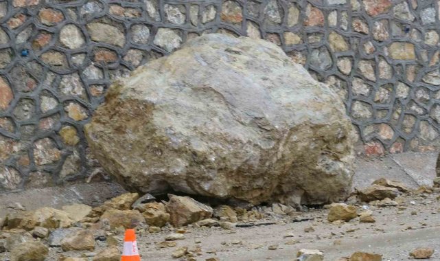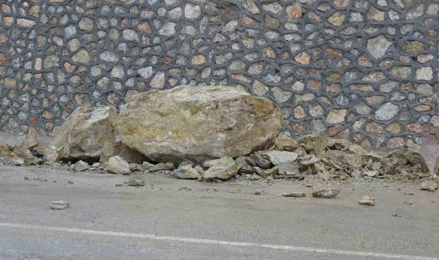 Yola düşen kayalar iş makineleri yardımıyla kaldırıldı.