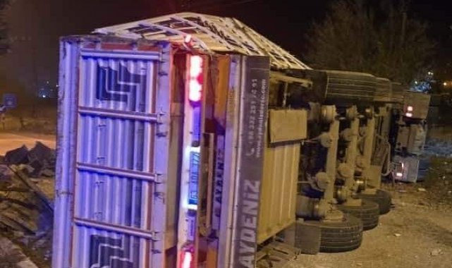 Malatya'nın Doğanşehir ilçesinde sürücüsünün kontrolünden çıkan tırın devrilmesi sonucu yol bir süre trafiğe kapandı.