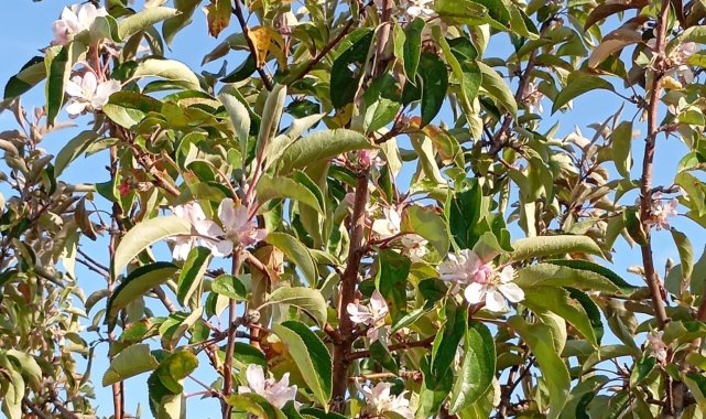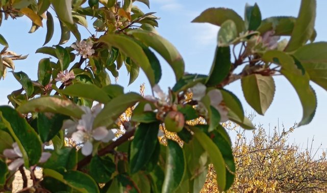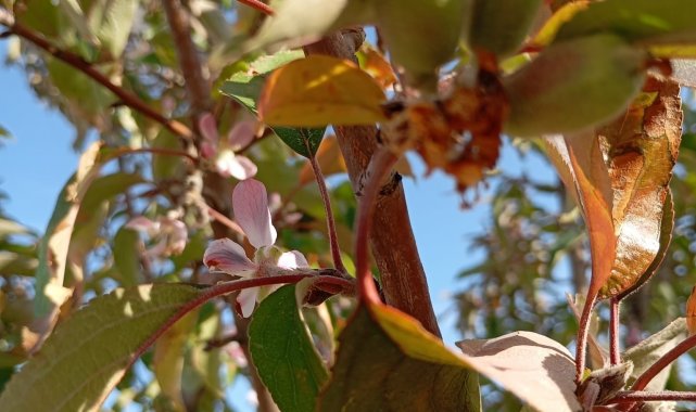 Malatya'da elma ağacı çiçek açıp meyve verdi