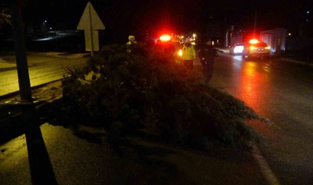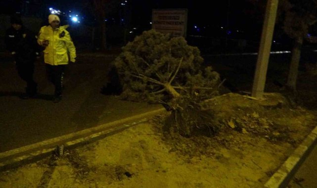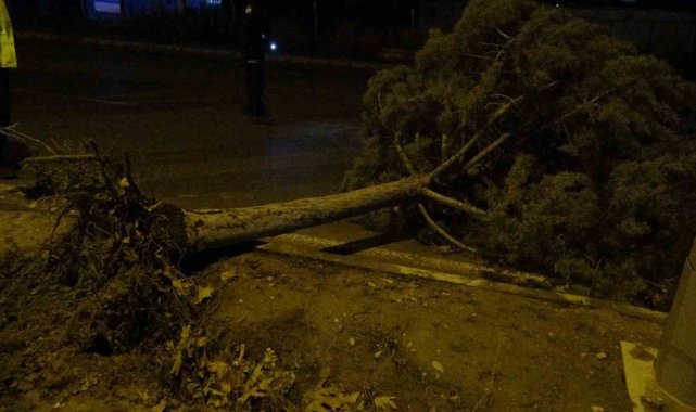 Malatya'da etkili olan fırtına, sağanak yağışla birlikte ağaçları kökünden söktü.