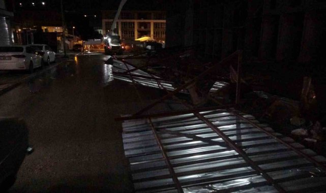 Malatya'da, gece yarısı etkili olan şiddetli fırtına sağanak ile birleşince ağaçları kökünden sökerken, bazı noktalarda evlerin çatıları uçtu konteyner iş yerlerinin tabelaları şantiye çevrelerindeki bariyerler devrildi.