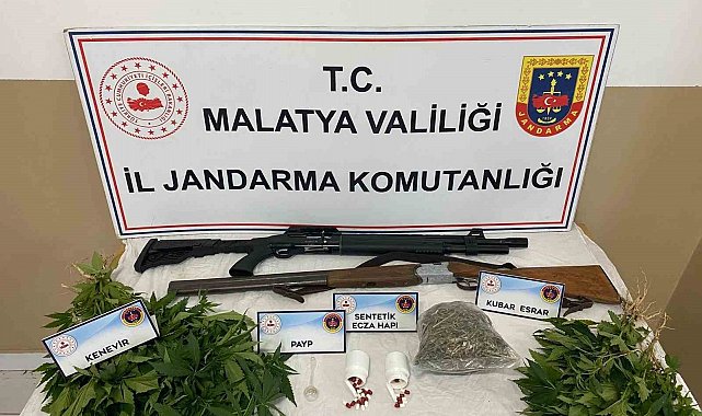 Malatya İl Jandarma Komutanlığı ekipleri tarafından Doğanşehir, Kuluncak ve Yeşilyurt ilçelerinde düzenlenen uyuşturucu operasyonlarında, çok sayıda yasa dışı madde ve silah ele geçirilirken 6 şüpheli hakkında adli işlem başlatıldı.