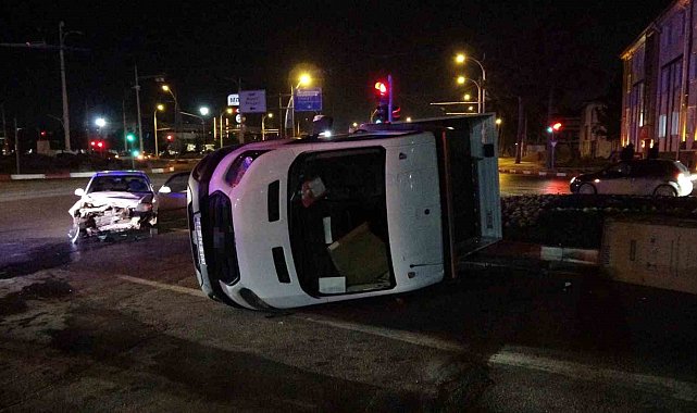 Malatya'da otomobil ile çarpışan kamyonetin devrilmesi sonucu 1 kişinin yaralandığı kazanın kamera görüntüleri ortaya çıktı.