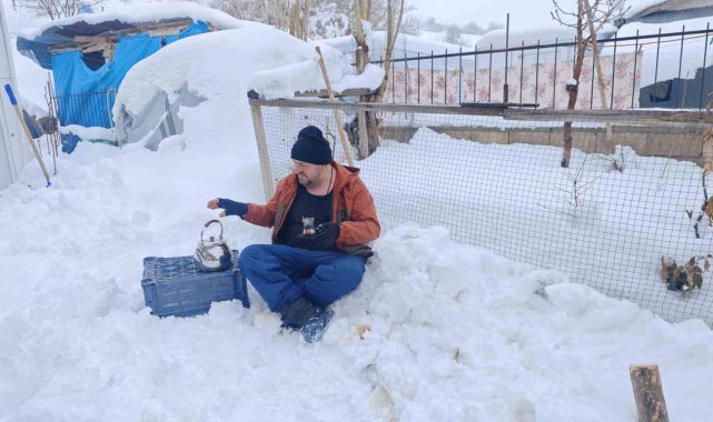 Malatya'da kent genelinde etkili olan ve kırsal kesimlerde yer yer bir metreyi bulan kar yağışı günlük yaşamı zorlaştırdı. Akçadağ ilçesine bağlı Kozluca Mahallesi'nde esnaflık yapan Mehmet Demirkaya ise kar yağışını fırsata çevirdi. Demirkaya, kar kalınlığının bir metreye yaklaştığı bölgede kardan soba yaparak üzerinde çay demledi.