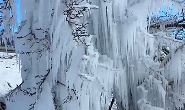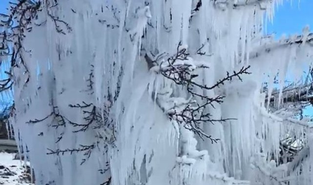 Soğuk hava, ilçede hayatı adeta durma noktasına getirdi. Ağaçların gövde ve dal kısımları neredeyse tamamen buzla kaplanırken, kartpostallık görüntüler meydana geldi.