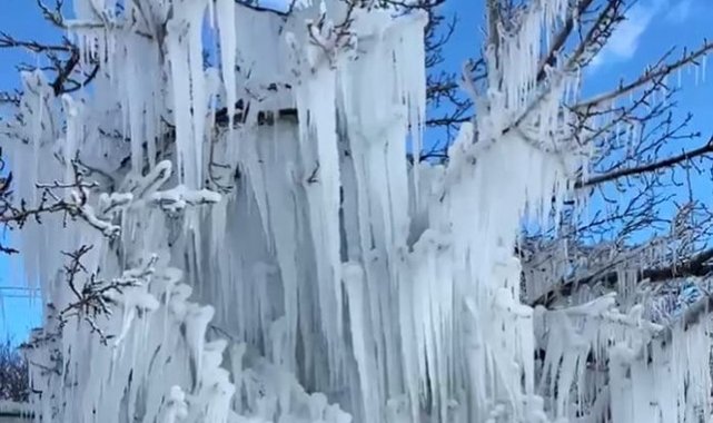 Malatya'nın Darende ilçesinde, aşırı soğuklar kayısı ağaçlarında ilginç görüntüler oluşturdu. Aşağıulupınar Mahallesi'nde hava sıcaklığının eksi 15 ila 20 dereceye kadar düşmesiyle, kayısı ağaçları buzla kaplandı ve dallarda sarkıtlar oluştu.