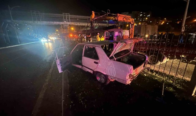 Hurdaya dönen araç çekici ile bulunduğu yerden kaldırılırken, kazayla ilgili inceleme başlatıldı.