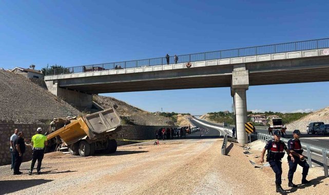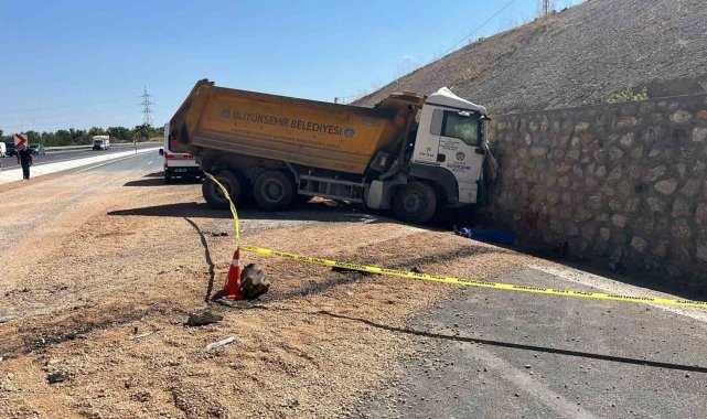 Malatya'da sürücünün kontrolünden çıkan hafriyat kamyonu önce bariyerlere daha sonra ise istinat duvarına çarptı. Kazada 1 kişi hayatını kaybetti.