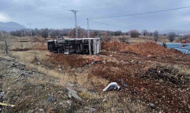 Malatya'da sürücüsünün kontrolünden çıkan kamyon önce park halindeki araca daha sonra ise bariyerlere çarparak devrildi. Kazada 1 kişi yaralandı.
