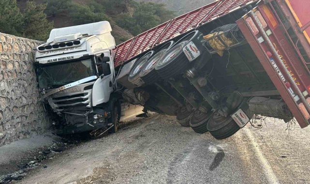 Malatya'da sürücüsünün kontrolünden çıkan tır istinat duvarına çarptı. Kazada 1 kişi yaralandı.