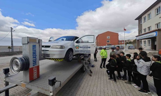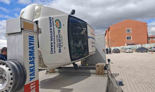 Malatya İl Emniyet Müdürlüğü Trafik Şube ekipleri tarafından Celal Yenitur Ortaokulu bahçesine kurulan simülasyon aracıyla, öğrenciler bir trafik kazası anında yaşanabilecekleri birebir deneyimleme fırsatı buldu. Simülasyonda öğrenciler, hızla seyreden bir aracın takla atması durumunda emniyet kemeri takılıyken ve takılı değilken yaşanacak etkileri gözlemledi.