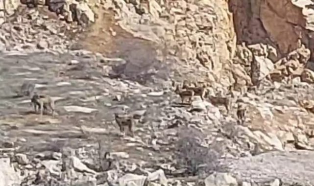 Türkiye'de nesli tükenme tehlikesi altında olduğu için koruma altında olan yaban keçileri, Malatya'nın Yeşilyurt ilçesi Kırlangıç Mahallesi'nde dağlık alanda sürü halinde görüntülendi.