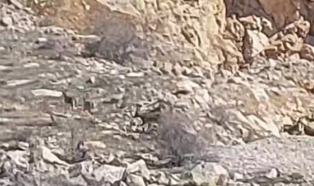 Bölgede bulunan bir taş ocağı tesisi çevresinde görülen yaban keçileri, cep telefonu kameralarına yansırken bir süre sonra dağların yüksek kesimlerine doğru kaçarak uzaklaştıkları görüldü.