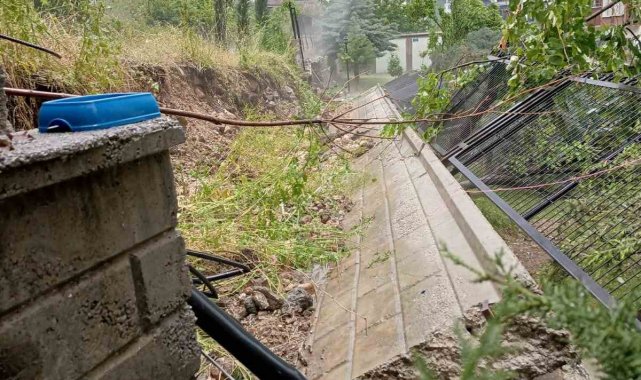 Malatya'da sağanak yağış site duvarını yıktı