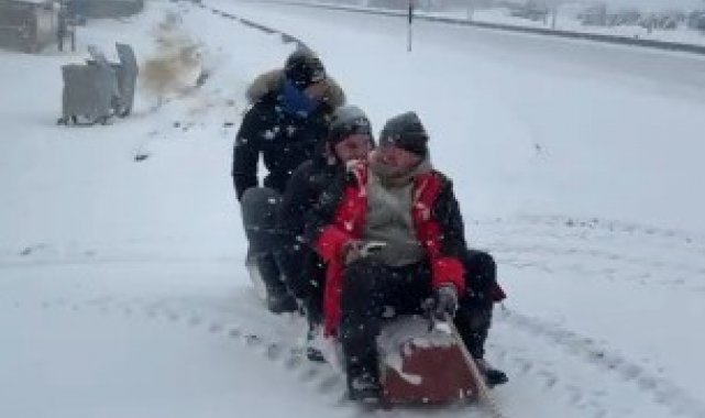 Malatya'da kent genelinde etkisini sürdüren kar yağışı, hayatı olumsuz etkiliyor. Yoğun kar yağışının etkisi altındaki kentte özellikle ulaşımda aksamalar yaşanırken Akçadağ ilçesi Kozluca Mahallesi'nde, traktör arkasına bağlanan kütük üzerinde karda sörf yapan gençler ise dakikalar süren heyecan dolu bir yolculukla karın tadını çıkardı.
