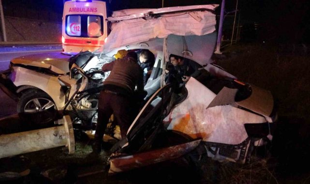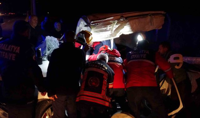 Malatya'da trambüs direğine çarpan araç kağıt gibi dağıldı: 1'i ağır 2 yaralı