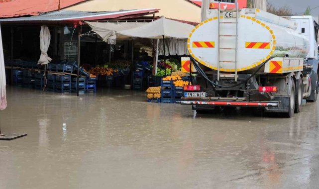 Malatya'nın Darende ilçesinde aniden bastıran sağanak yağış ve dolu, yaşamı olumsuz etkiledi. Yağışlar sebze halini göle çevirirken, dolu nedeniyle kaldırımlar beyaza büründü.