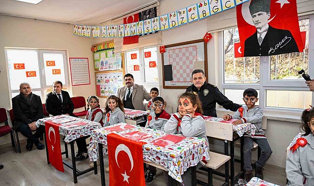 Malatya İl Emniyet Müdürü Kayhan Ay, DHMİ Malatya Havalimanı Müdürü Serdar Akyüz, İl Emniyet Müdür Yardımcısı Deniz Yılmaz ve emniyet personeli, Akçadağ ilçesinde bulunan Aksaray Şehit Akgün İlkokulu öğrencilerini ziyaret etti.