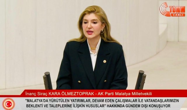 AK Parti Malatya Milletvekili İnanç Siraç Kara Ölmeztoprak, TBMM Genel Kurulu'nda TBMM Başkanvekili Bekir Bozdağ'ın gündem dışı söylediği başlıklar üzerine söz alarak Malatya'da yürütülen yatırımlar, devam eden çalışmalar ile vatandaşların beklenti ve taleplerine ilişkin kapsamlı açıklamalarda bulundu.