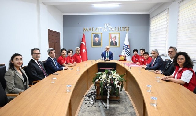 Kuzey Kıbrıs Türk Cumhuriyeti'nde (KKTC) düzenlenen TEKNOFEST 2025 yarışmasında Türkiye birinciliği elde eden Malatyalı öğrenciler, Malatya Valisi Seddar Yavuz'u makamında ziyaret etti.