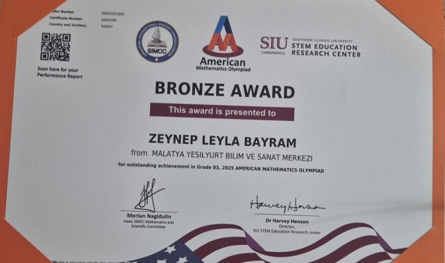 Malatya'da ilkokul öğrencileri uluslararası matematik olimpiyatında 1 altın ve 2 bronz madalya kazandı.