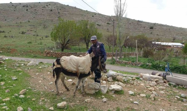 Malatya'nın Yeşilyurt ilçesinde hayvancılıkla uğraşan Bayram Yılmaz, eşek sayısındaki düşüşe dikkat çekerken eşeği Kadife'ye gözü gibi bakıyor.