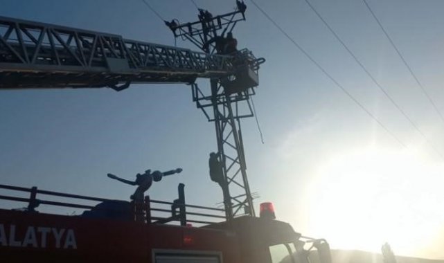 Malatya'nın Doğanşehir ilçesinde çıktığı yüksek gerilim hattında akıma ...