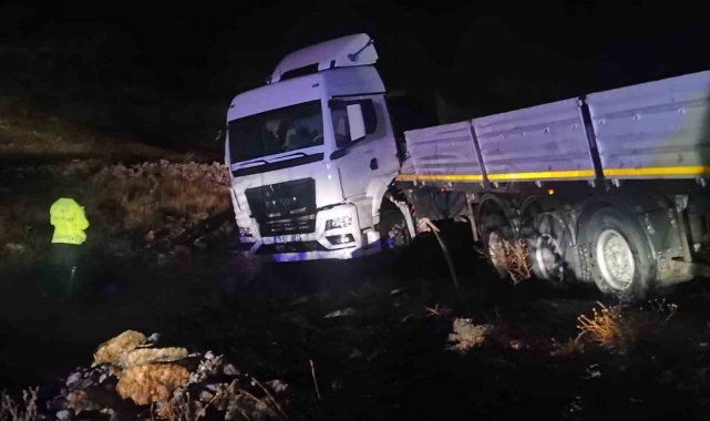 Doğanşehir ilçesinde tırın karşı şeride geçerek şarampole düşmesi sonucu 1 kişi yaralı