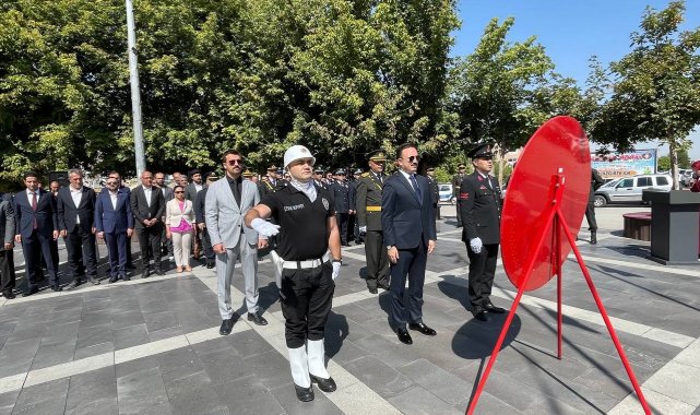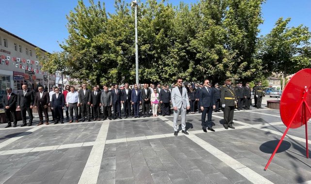 Cumhuriyet Meydanı'nda Atatürk büstüne çelenklerin sunulmasıyla başlayan programda saygı duruşunda bulunuldu, İstiklal Marşı okundu.