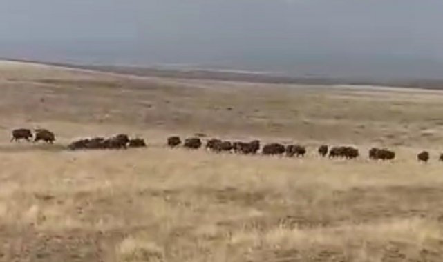 Malazgirt'te domuz sürüsü görüntülendi