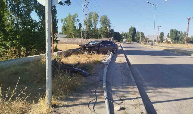 Malazgirt'te otomobil direğe çarptı: 1 yaralı