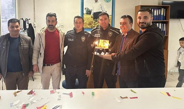 Malazgirt Ziraat Odası tarafından yapılan sürpriz organizasyonda, ihbar üzerine olay yerine gelen polis ekipleri pasta ve alkışlarla karşılandı.