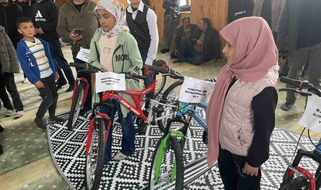 MUŞ (İHA) – Muş'un Malazgirt Müftülüğü tarafından Ramazan ayı boyunca "Teravihe gel, bisikleti kap" ve "Kur'an kursuna katıl, hediyeni kazan" sloganlarıyla yürütülen projede başarılı olan çocuklara bisiklet ve saat hediye edildi.