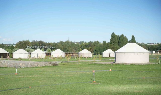 Geleneksel Türk çadırlarının kurulduğunu ifade eden Kaymakam Bayram, "Arkamızda görülen çadırlar, geleneksel Türk çadırlarıdır. Başta bir han çadırı olmak üzere 16 tematik Türk çadırı kuruldu. Bu çadırlarda farklı illerden gelen yöresel ürünler ve halk oyunları sergilenecek. Etkinlik alanının arka bölümünde ise Gençlik ve Spor Bakanlığımız tarafından gençlere ve çocuklara yönelik spor ve oyun aktivitelerinin gerçekleştirileceği büyük çadırlar yer alacak. Buraya gelen çocuklarımız ve gençlerimiz bu alanlarda keyifli vakit geçirecekler" diye konuştu.