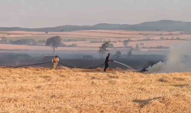 Tekirdağ'ın Malkara ilçesinde çıkan anız yangınında yaklaşık 200 dönüm biçilmiş buğday tarlası kül oldu.