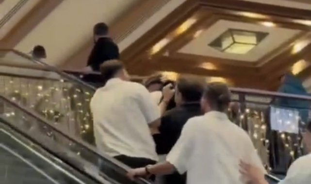 Yaşananlar o sırada alışveriş merkezinde bulunan bir vatandaşın cep telefonu kamerasına yansıdı. Görüntülerde saldırganın işletme çalışanları tarafından yürüyen merdivenlerde götürülerek uzaklaştırıldığı ve taraflar arasında tekme tokat kavga yaşandığı anlar yer aldı.