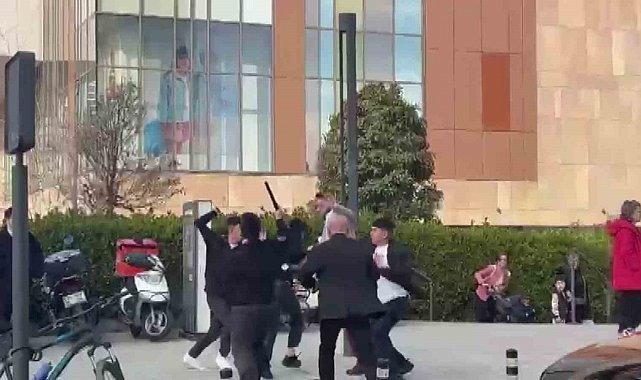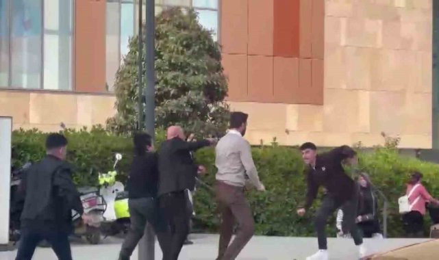 Maltepe'de alışveriş merkezinde bir kişi, şüpheli poşet taşıyan şahısları güvenlik görevlilerine bildirdi. Görevlilerin şüphelileri AVM'den çıkarması üzerine çıkan bıçaklı kavgada 1 kişi yaralandı. O anlar cep telefonu kamerasına yansıdı.