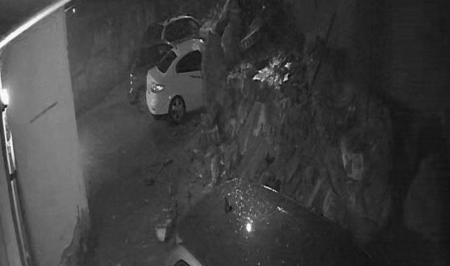 Maltepe'de gece saatlerinde etkili olan yağışın ardından bir binanın istinat duvarı çöktü. Duvarla birlikte kaldırım da park halindeki 3 otomobilin üzerine devrilirken, olayda yaralanan olmadı. Olay anı saniye saniye güvenlik kamerasına yansıdı