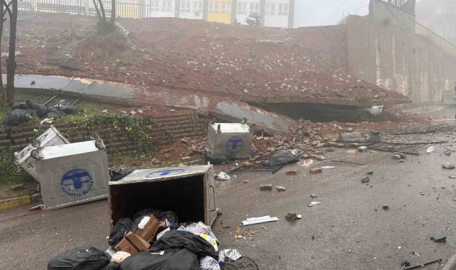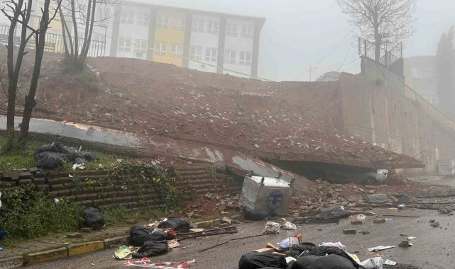 Maltepe'de okulun istinat duvarı çöktü: Araç kullanılamaz hale geldi