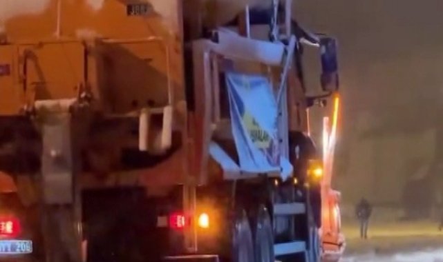 Maltepe'de İBB'ye ait küreme aracı yoğun kar yağışı sonrası çalışma yapmak üzere ilerlediği cadde üzerinde yolda kaldı. O anlar vatandaşın cep telefonu kamerasına yansıdı.