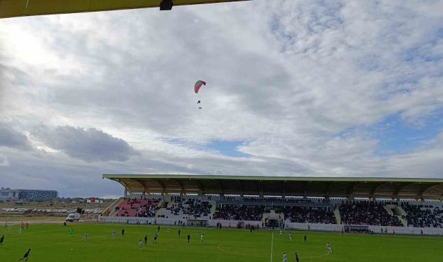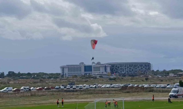 Manavgat Belediye Spor ile Mezitli 33 Spor arasında oynanan Bölgesel Amatör Lig karşılaşmasında stadın üzerinde uçan paramotor ilgi odağı oldu.