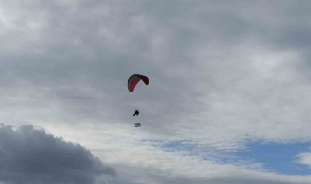 Bodur, karşılaşmanın oynandığı anlarda Manavgat Atatürk Stadyumu'nun üzerinde ve çevresinde paramotoru ile gösteri yaptı.
