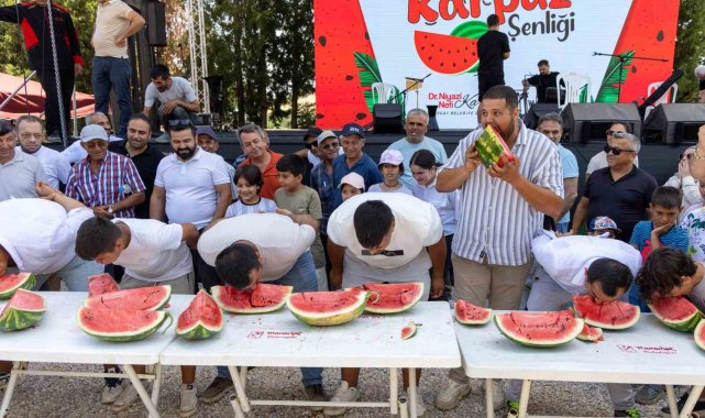 Şenlikte düzenlenen bir diğer renkli etkinlik ise en hızlı karpuz yeme yarışması oldu. Heyecan dolu yarışmanın kazananı Latif Balkan olurken, yarışma alanında hem yarışmacılar hem de izleyenler eğlenceli anlar yaşadı.