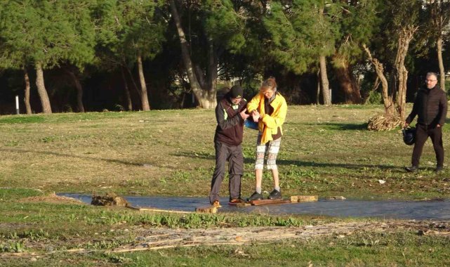 Manavgat'ta dev dalgalar Titreyengöl'ü denizle birleştirdi