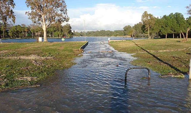 Antalya'nın Manavgat ilçesinde şiddetli fırtınanın sebep olduğu dev dalgalar Titreyengöl'de saat kulesinin bulunduğu bölgenin göle dönmesine ve Titreyengöl'ün denizle birleşmesine neden oldu.