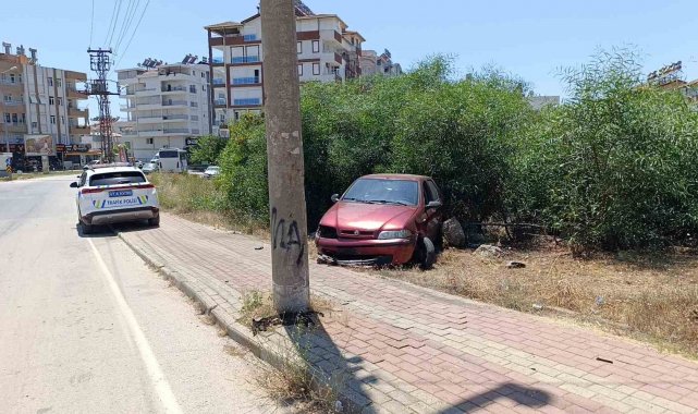 Manavgat'ta direğe çarpan otomobil sürücüsü yaralandı