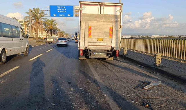 Antalya'nın Manavgat ilçesi Çevreyolu Köprüsü üzerinde meydana gelen kazada, Antalya istikametinden Alanya yönüne gitmekte olan Şadi M. idaresindeki 07 AHT 334 plakalı kamyon, aynı yönde ilerleyen Osman A'nın kullandığı 34 EZE 891 plakalı, 31 AOH 33 dorse plakalı tıra sağ arka kısmından çarptı.